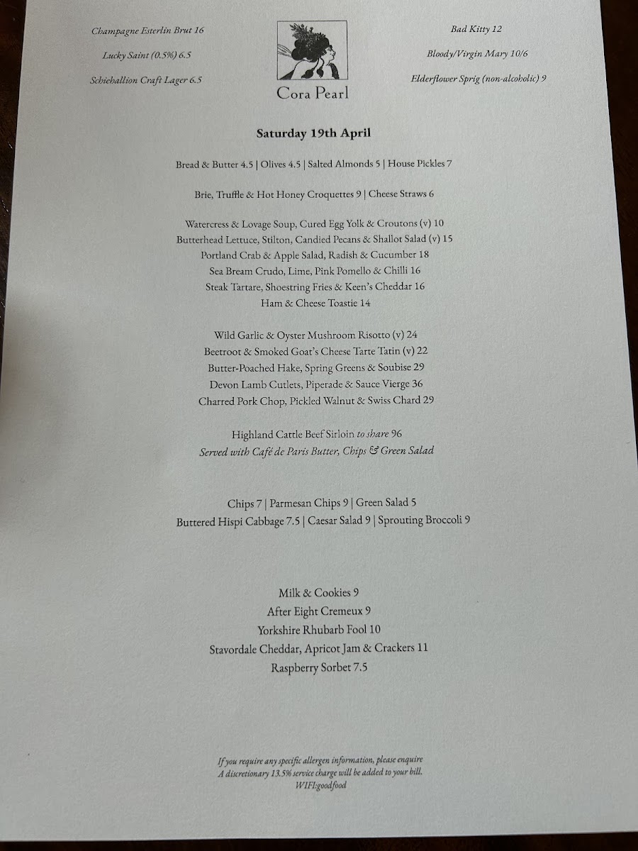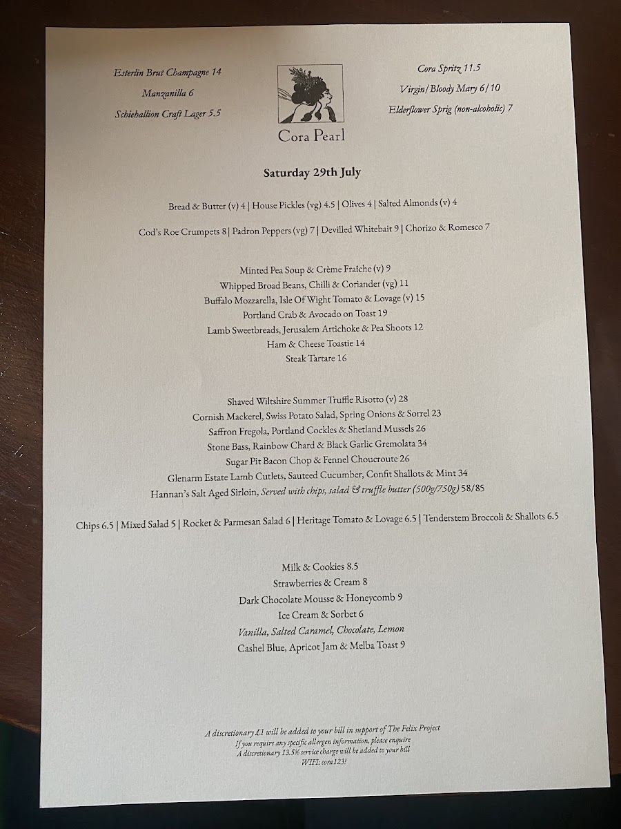 Alongside mouthwatering mains, the desserts come highly recommended – indulge in a rich tiramisu or a refreshing lemon posset with berries. With generous portions and a focus on quality ingredients, Cora Pearl stands out as a perfect spot for leisurely meals or pre-theatre dining.